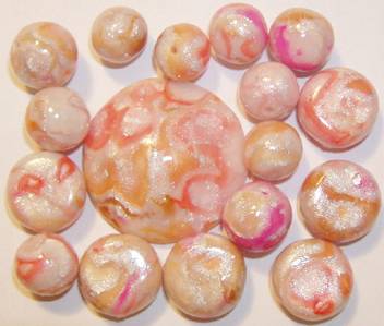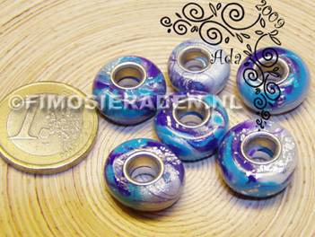 Wil je deze kralen zelf ook maken? Koop FIMO les Les 67C in de webshop. Ook de hiervoor benodigde materialen als FIMO Soft Parelmoer, FIMO Soft Transparant, Zilverfolie, Cane mesje, Glanslak e.d. vind je in de webshop. |